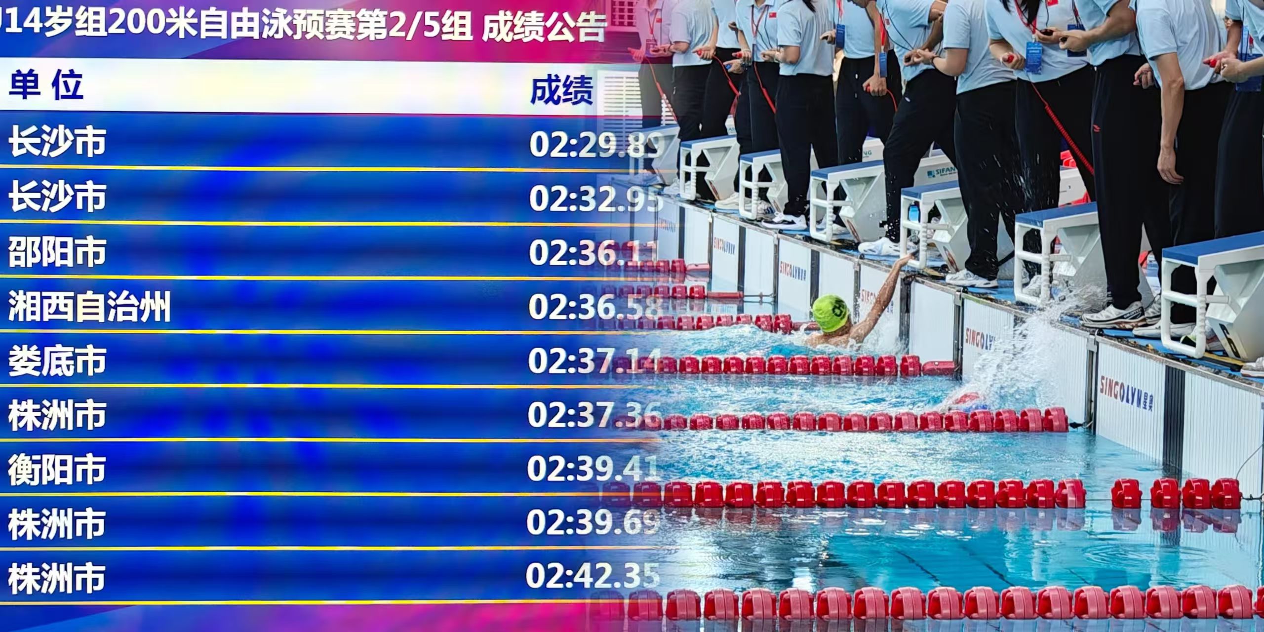 北京星奧科技股份有限公司作為本屆錦標(biāo)賽的技術(shù)支持單位,將提供"星奧云"體育賽事服務(wù)平臺(tái)及自主研發(fā)的專業(yè)游泳計(jì)時(shí)記分系統(tǒng),為賽事提供高效穩(wěn)定的技術(shù)保障。值得注意的是,在今年6月湖南省青少年游泳錦標(biāo)賽達(dá)標(biāo)賽中使用的正是該套系統(tǒng)設(shè)備,該系統(tǒng)能夠?qū)崟r(shí)精準(zhǔn)采集運(yùn)動(dòng)員自入水起的核心競(jìng)技指標(biāo),包括出發(fā)反應(yīng)時(shí)間、分段成績與終點(diǎn)成績,并對(duì)海量數(shù)據(jù)進(jìn)行即時(shí)計(jì)算處理,處理結(jié)果通過場(chǎng)地顯示屏直觀展示,確?,F(xiàn)場(chǎng)觀眾第一時(shí)間掌握賽事實(shí)況信息。